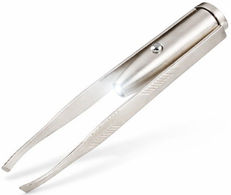 Pinzas fabricadas en acero para depilación en cejas y otras zonas con vello. Incorporan lud led para conseguir mejor precisión en el resultado. Afiladas. Larga duración.