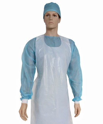 <li style="text-align:justify;">Fabricados completamente en plástico desechable, no contienen látex evitando riesgos de alergia. No cubre mangas. Talla única universal. Medidas: 125 cm alto y 80 cm ancho.</li>