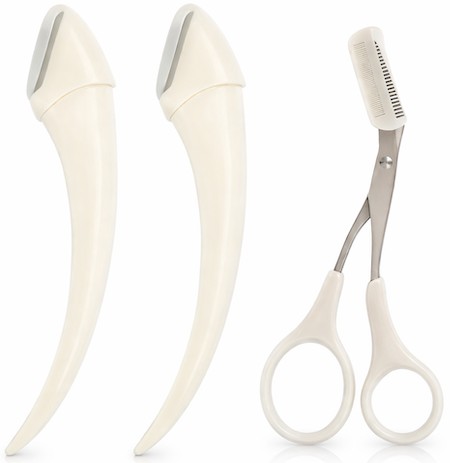 <li>Incluye <strong>recortador de cejas con cuchilla curva</strong> y <strong>tijeras con peine integrado</strong>, herramientas diseñadas para facilitar el corte y control del vello.</li>